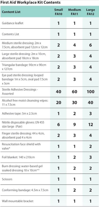 This BS compliant first aid kit is ideal for small or low risk workplaces such as offices or shops. Complete with a wall bracket, the kit contains all the necessary items needed to carry out basic first aid including sterile plasters, dressings, bandages and much more.